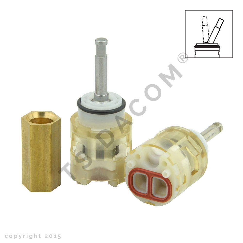 Cartuccia ceramica per mix tipo "ritmonio", con due pioli alla base e asta con quattro lati piani nella parte alta, completa di esagono in ottone, senza distributori