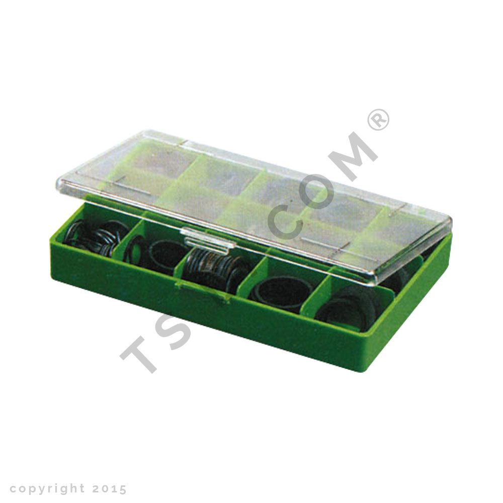 Scatola con assortimento guarnizioni in fibra vulcanizzata per vitoni, contenente 300pz in 15 misure