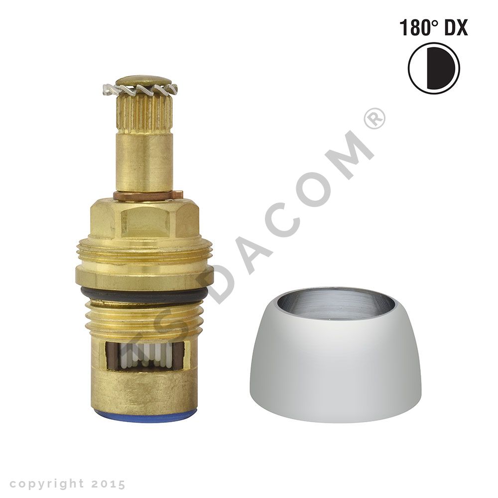 Vitone ceramico di ricambio per rubinetteria tipo "raf" modello "volga", broccia "m" con 20 denti, Øfil. basso 1/2" x Øfil. alto 22 x h 55 mm, 180° destro, completo di cappuccio copri vitone
