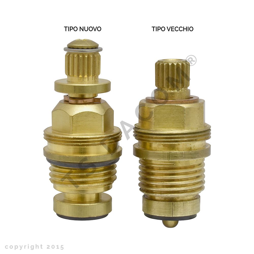 Vitone tradizionale di ricambio per rubinetteria tipo "fir", asta Ø 10,7 x h 16 mm, broccia con adattatore a 21 denti, Øfil. basso 1/2" x Øfil. alto 24 x h 50 mm, con vite
