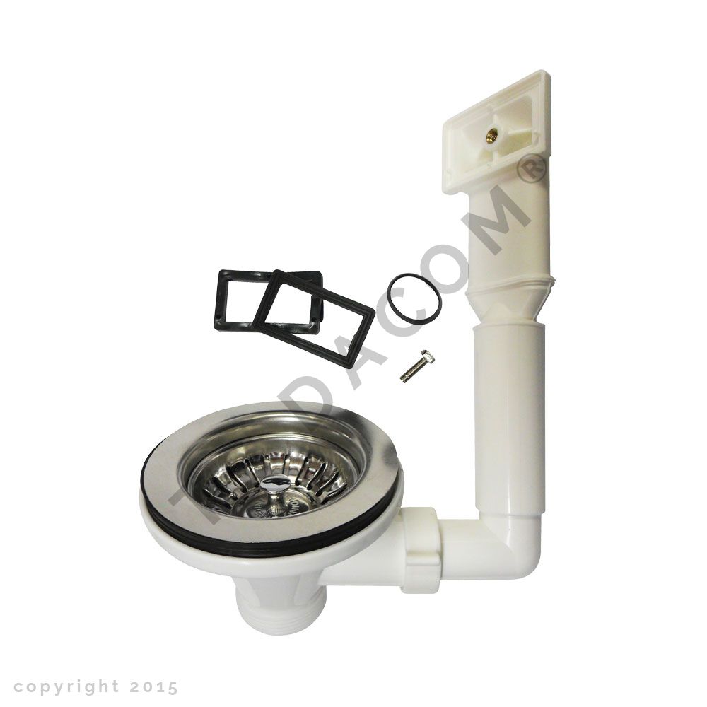Piletta basket in acciaio inox per lavello con troppo pieno componibile e griglia rettangolare