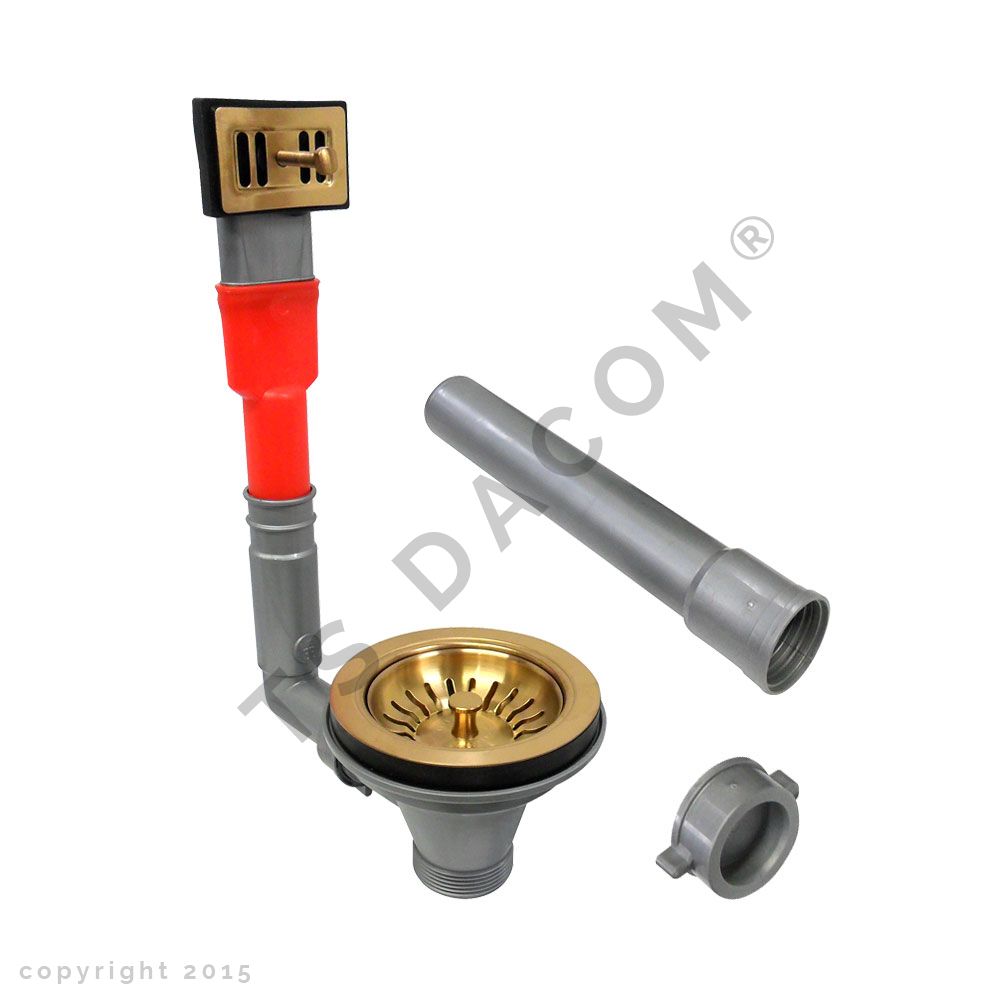 Piletta basket in ottone bronzato per lavello con troppo pieno flessibile estensibile e griglia rettangolare